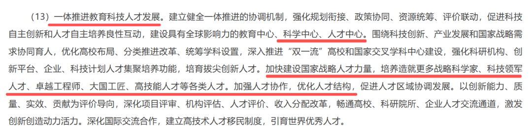《建议》指出:“加快建设国家战略人才力量,培养造就更多战略科学家、科技人才、卓越工程师、大国工匠、高技能人才等各类人才。”