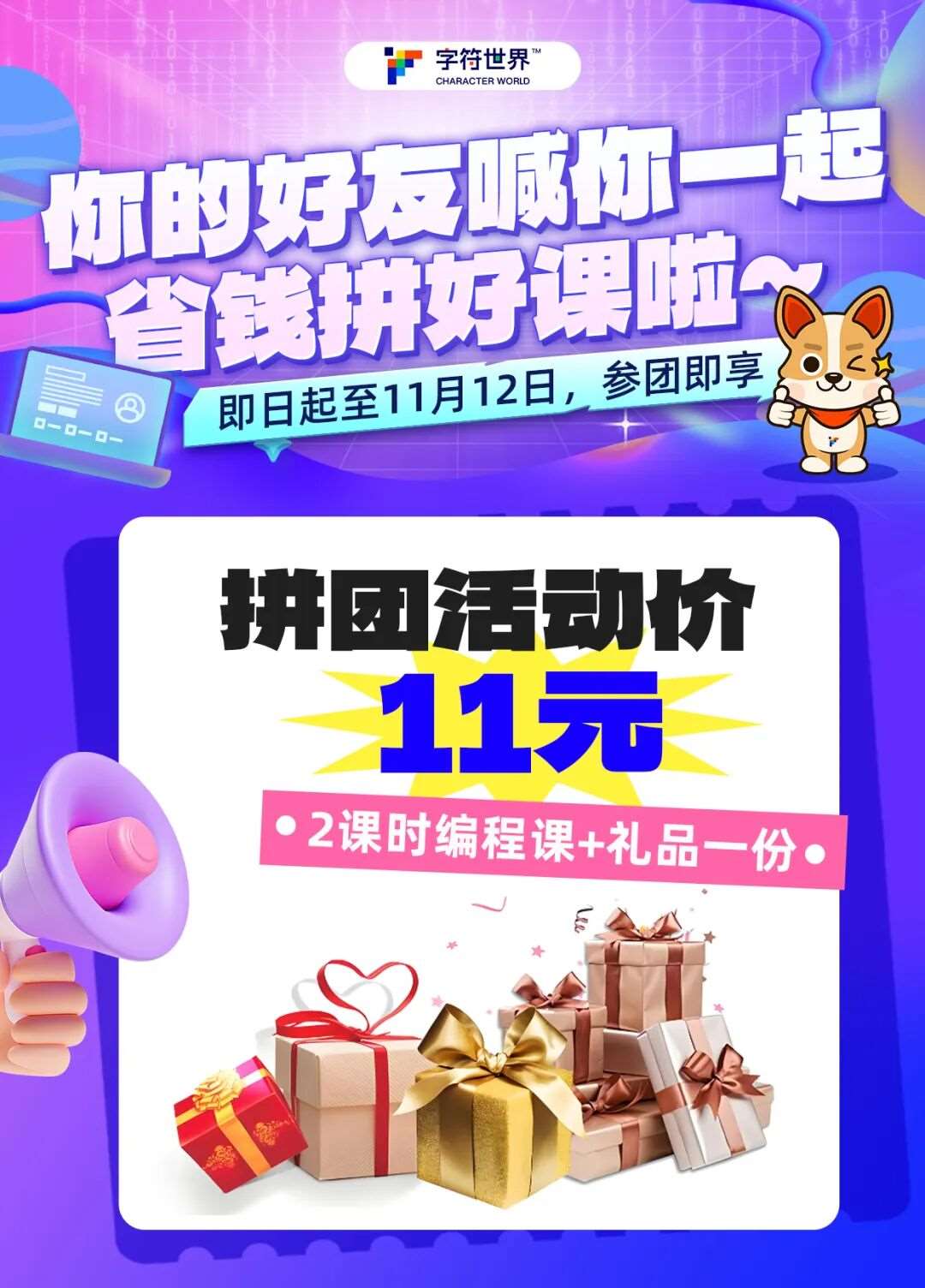 双十一字符创客节,拼团福利等你拿!