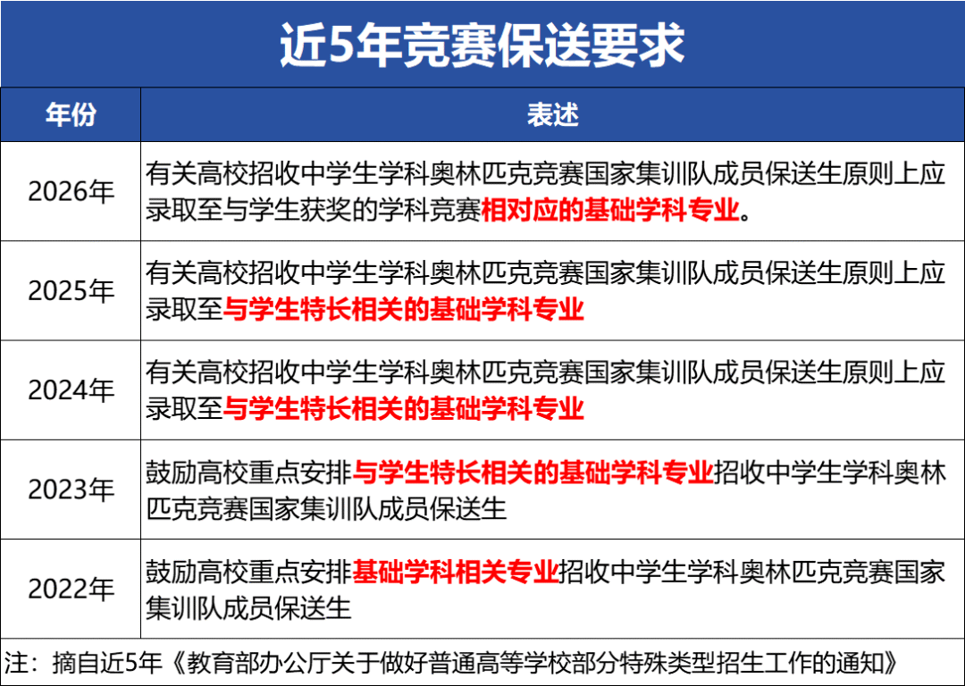 教育部近日发布的《2026年普通高等学校部分特殊类型招生工作的通知》,向竞赛领域释放了重磅信号。其中*核心的变动,是对奥赛国家集训队成员的推荐专业进行了史上*严格的限定,标志着竞赛升学的通道陡然收窄,方向被明确框定。