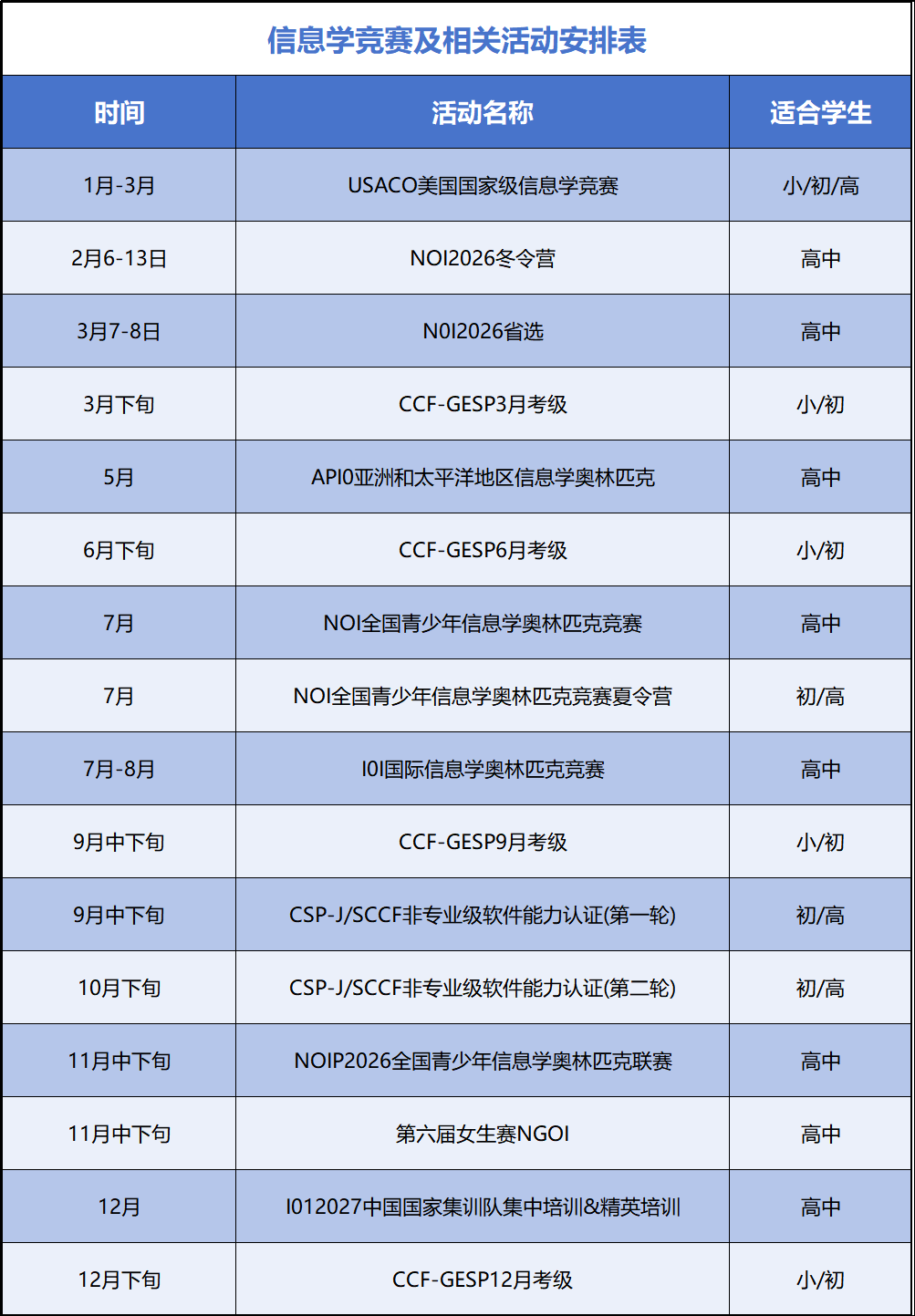 必须收藏!2026信息学赛事与考级日历发布